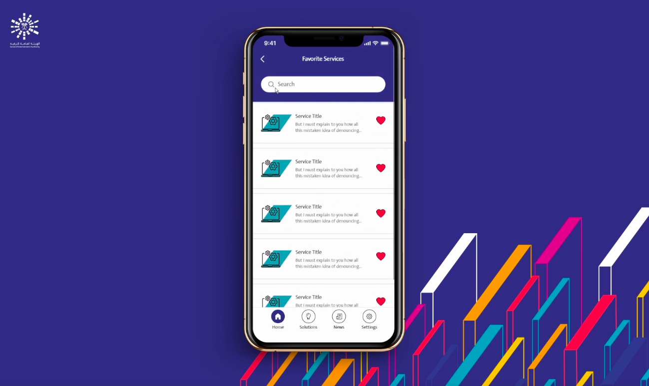 A mobile application the internal employees at the Saudi GEA whereby users can request multiple services both internally (IT & HR services) as well as externally for the employees to enjoy various benefits and requests multiple services out of work