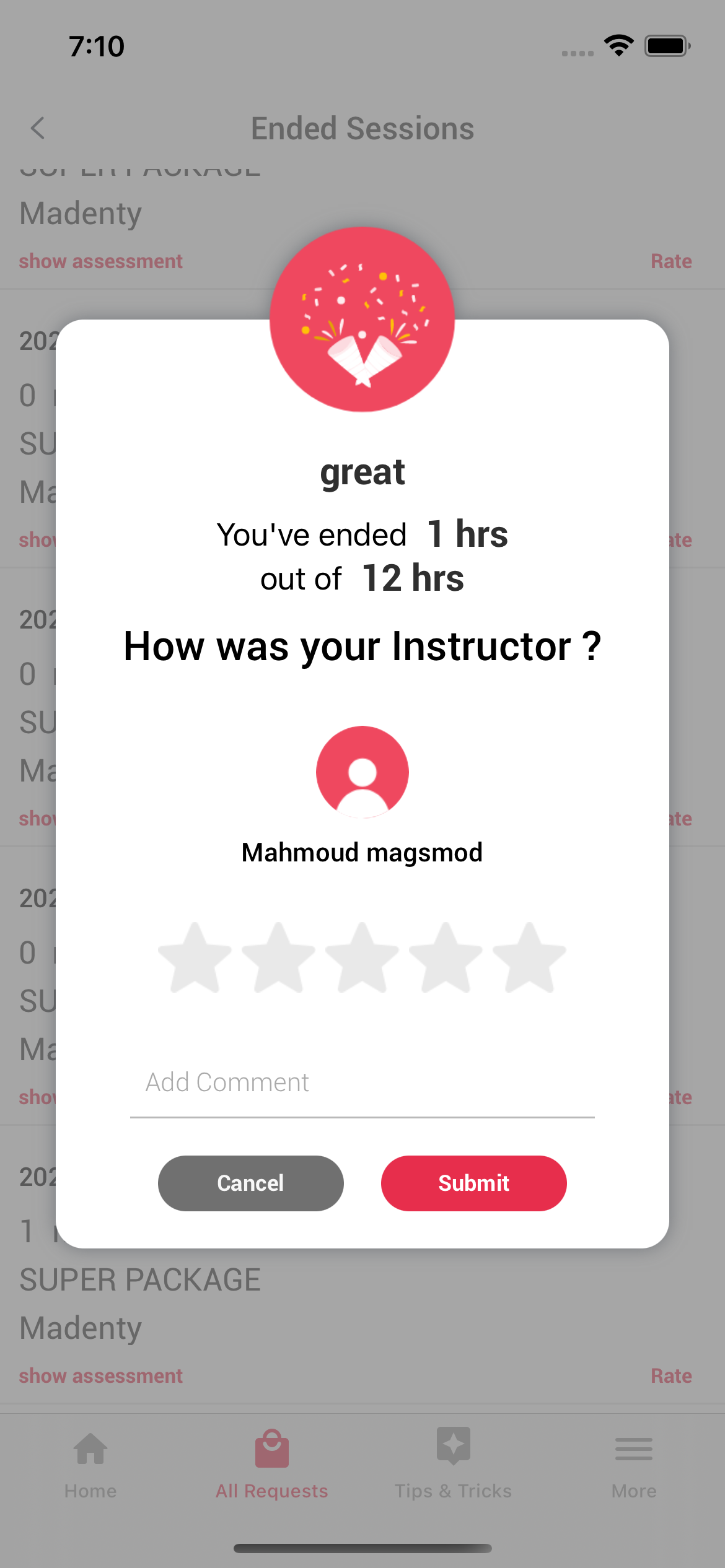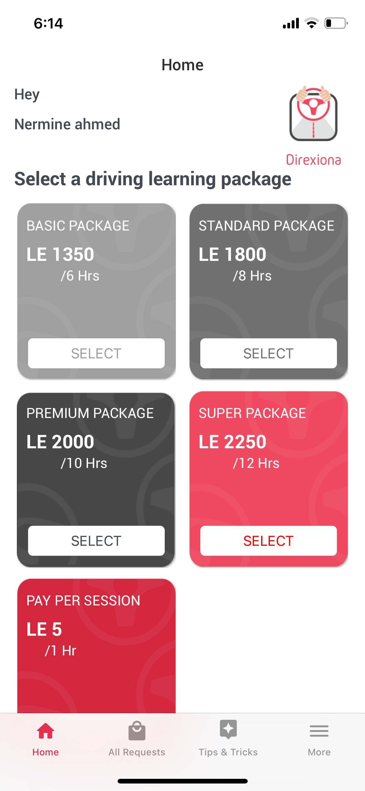 As a trainee you can select from several packages to start your training.The app allows you to pick the 5 mings and loca5on you prefer. You can find most areas in Cairo and Giza districts. The instructor full info must be disclosed once you pay using our online payment solu5on