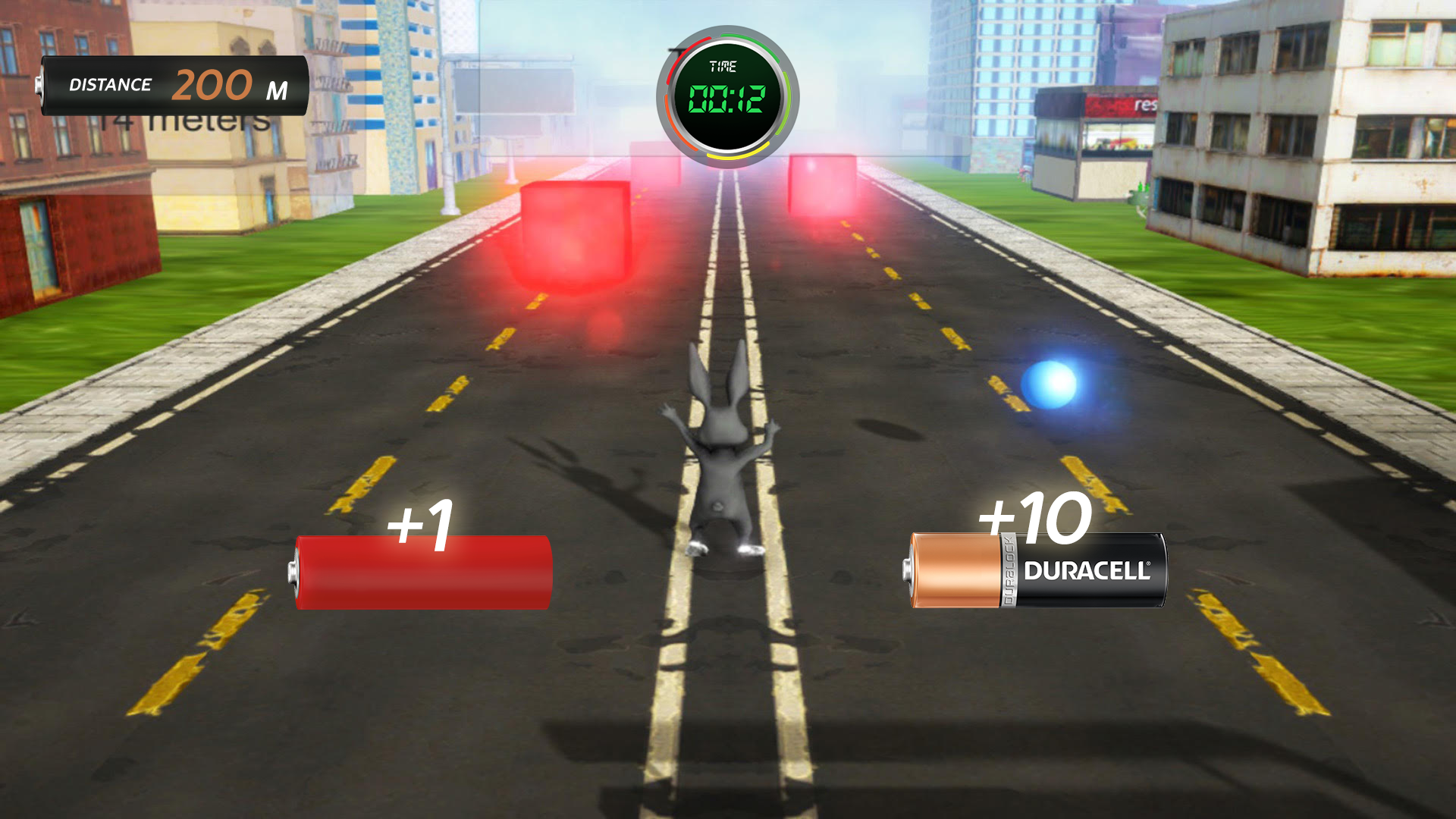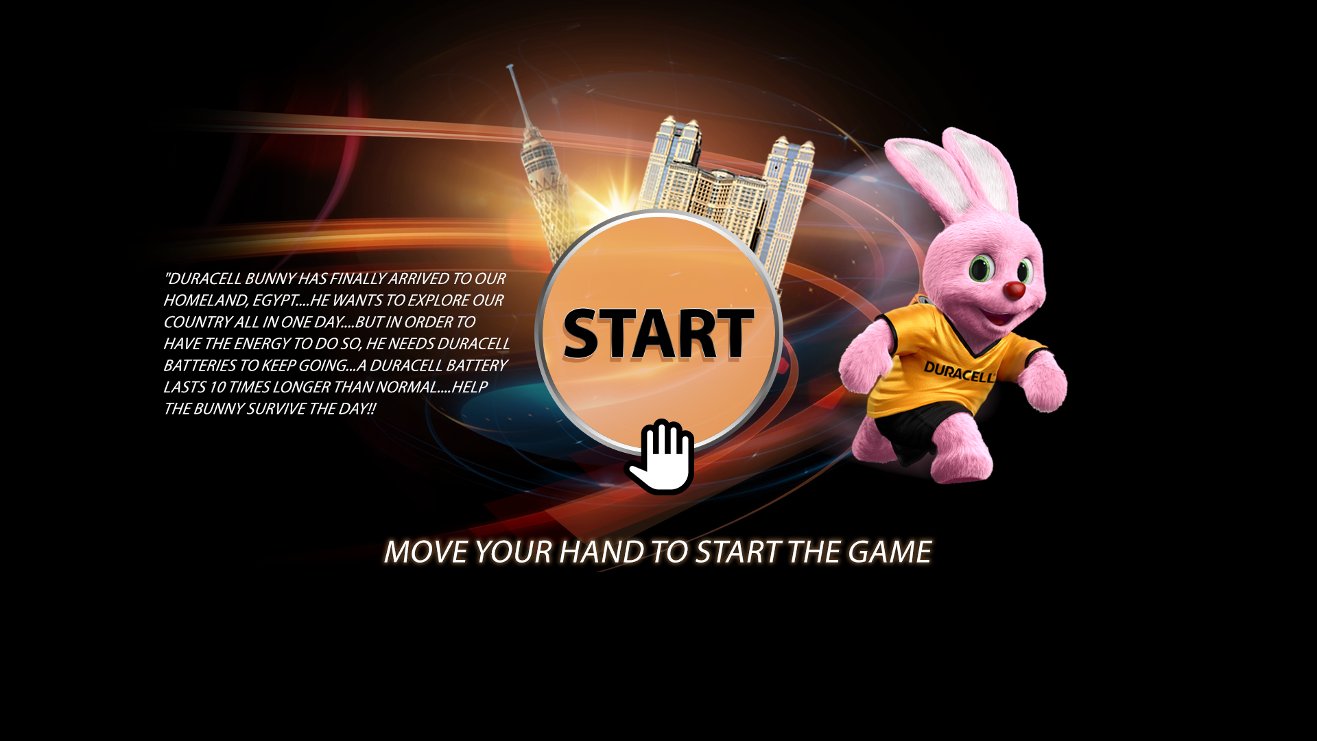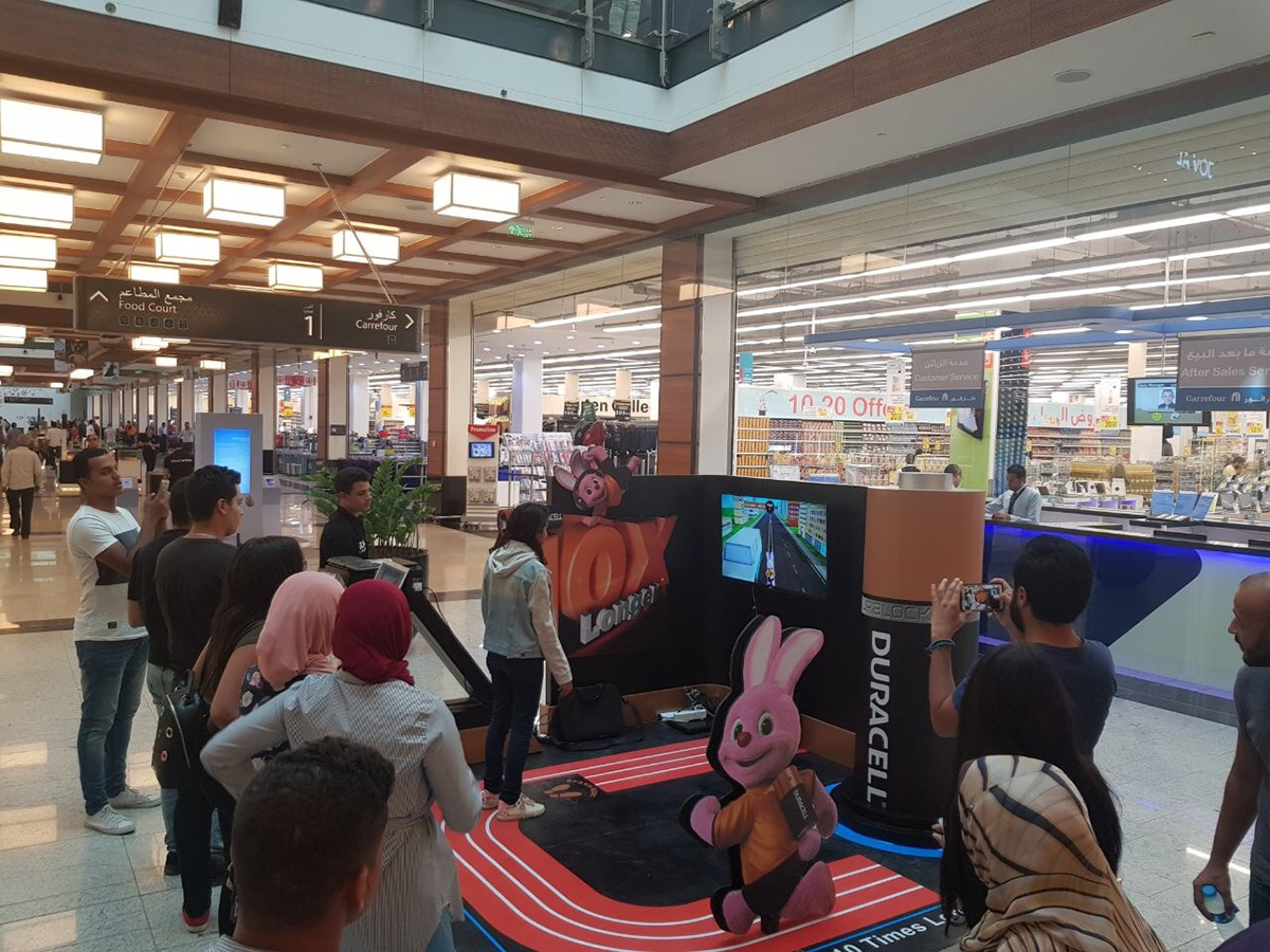 User controls the Duracell bunny by means of Xbox Kinect in the streets of Egypt, Saudi Arabia and UAE while avoiding hitting obstacles and collecting Duracell batteries to be able to accelerate more and reach further than other contestants.