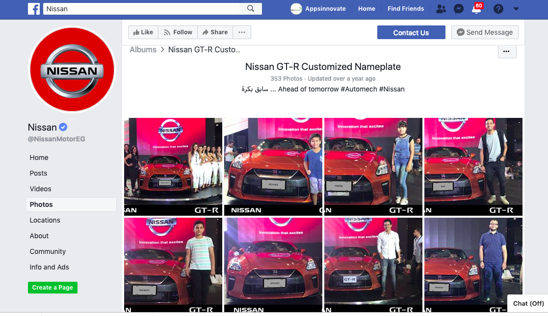 Nissan Egypt’s booth was the most engaging booth at Automech 2017’s event. The platform enabled Nissan to engage over 50,000 walking customers and 3500+ photo taken with Nissan GTR and Nissan Patrol cars during the 3 days period of the event as well as with the followers of Nissan Egypt’s page on Facebook.
