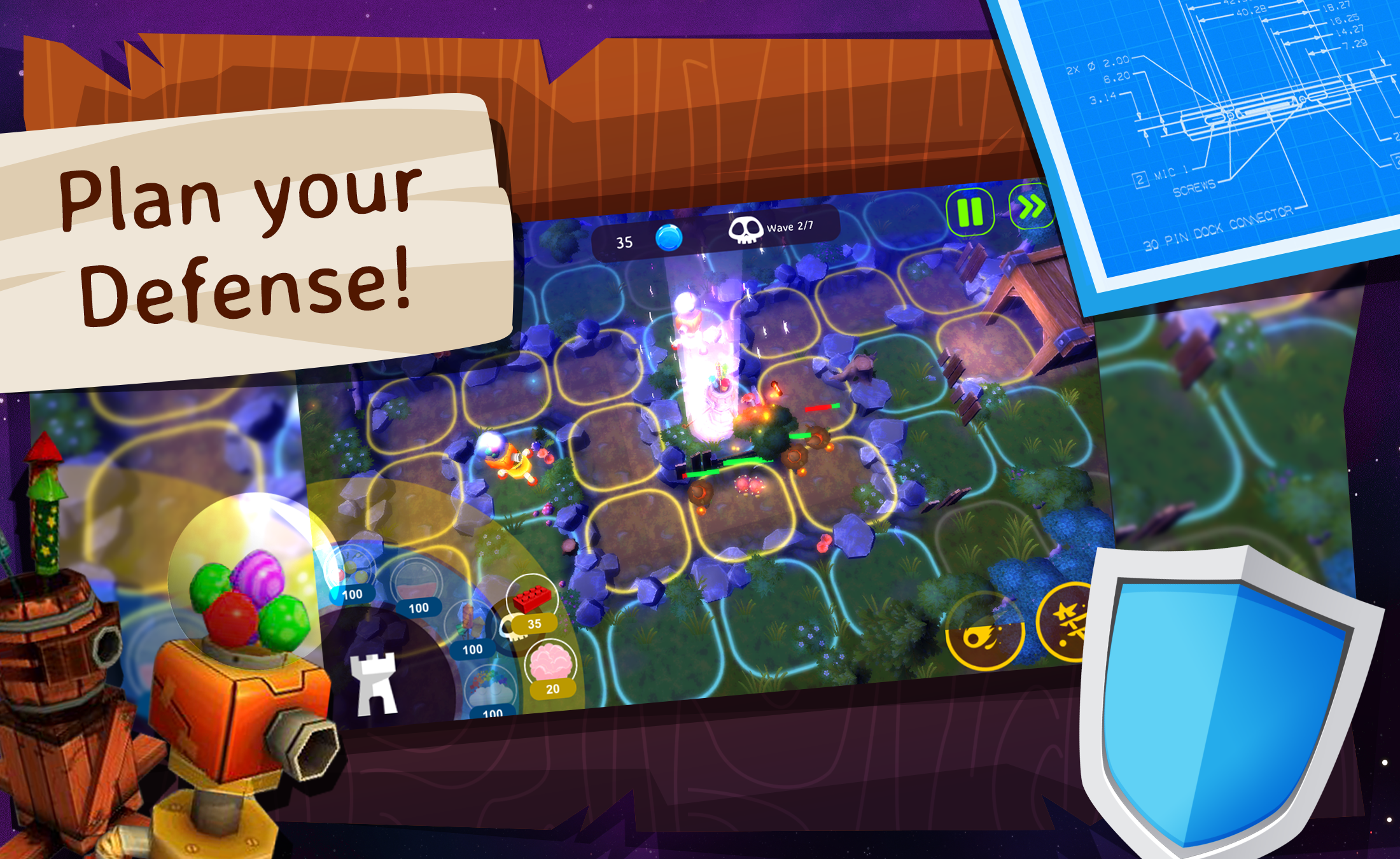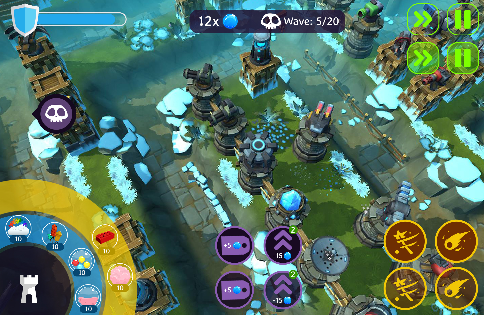 Nightmare Attack is a tower defense mobile game. The main theme is about a child who gets nightmares while asleep. To comfort himself/herself in the restless nights, the child will resort to seeking the assistance of their toys to combat the creatures causing the restless sleep. These toys include building- blocks, cotton candy, bubble rainbow tower, paintball tower, bubblegum tower, fireworks tower. As the player progresses in the game he/she collects orbs; and based on the number of orbs collected will have access to certain phases of the upgrades-tree. The actual upgrades require “points” that the player accumulates, (a) based on the achievement in each level, and (b) through in-app purchases or video ad.